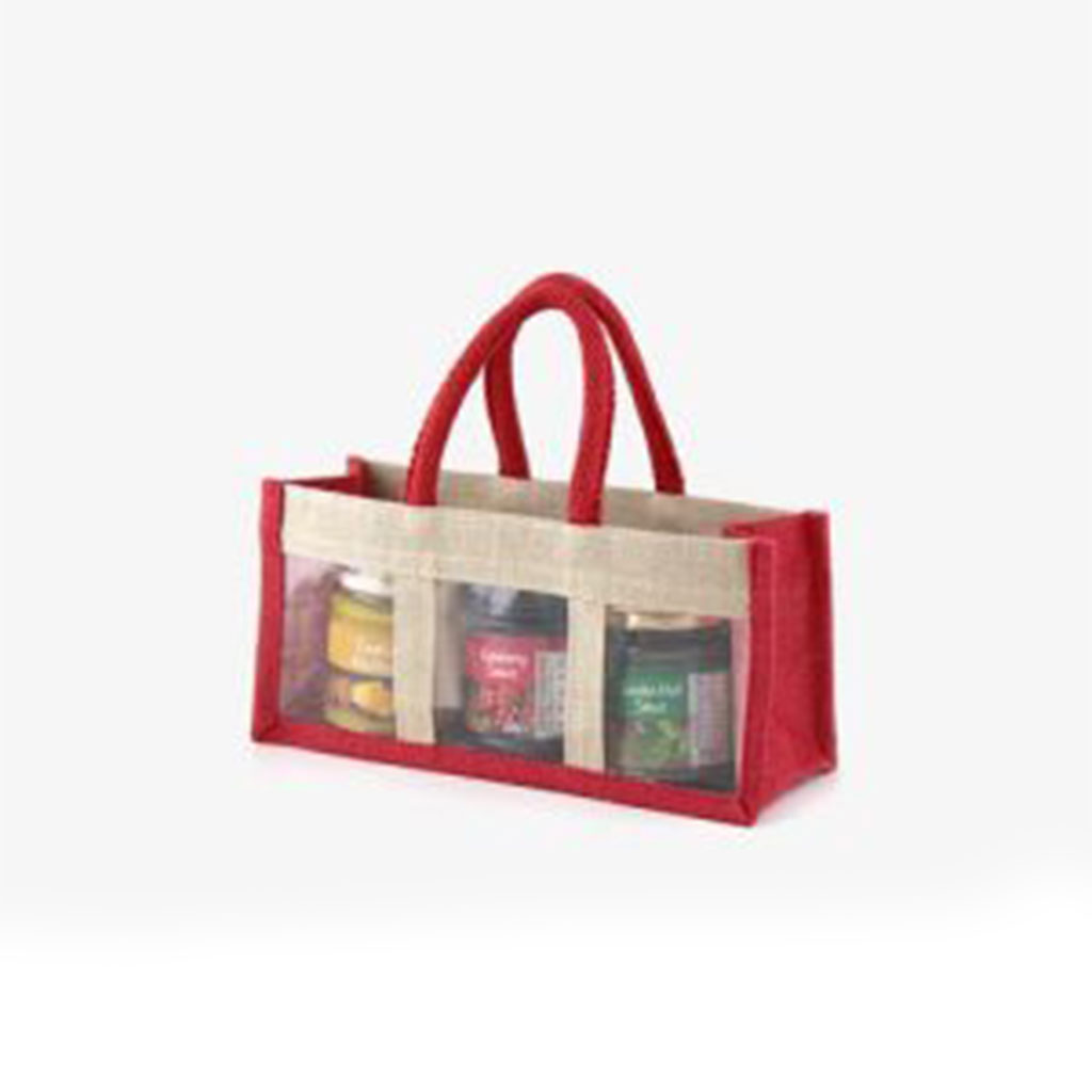 • Bag Description:  Jute Three Jar Bag with Dyed Gusset & Handles
