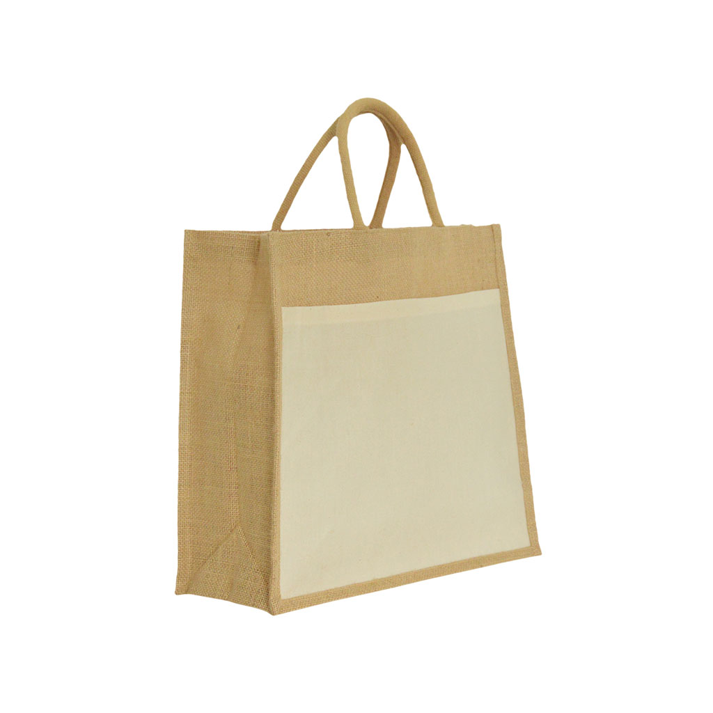- Bag Description: Natural Jute Bag with Gusset & Golden Weave