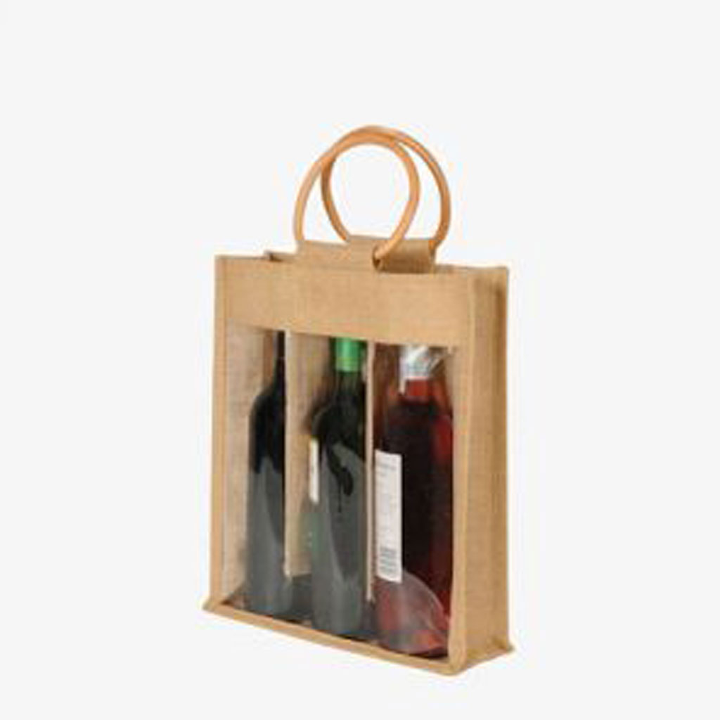 - Bag Description: Jute Three Bottles Bag with Gusset & Transparent Front